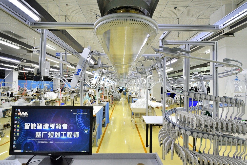 除了面料染色的智能化改造,圍繞服裝的設計、研發(fā)、生產(chǎn),元首集團也正在加快變革,通過(guò)探索和引進(jìn)自動(dòng)化縫制單元、智能吊掛系統、柔性整燙系統、自動(dòng)立體倉儲和物流配送系統,建立生產(chǎn)流程的MES系統管理,提高生產(chǎn)效率。